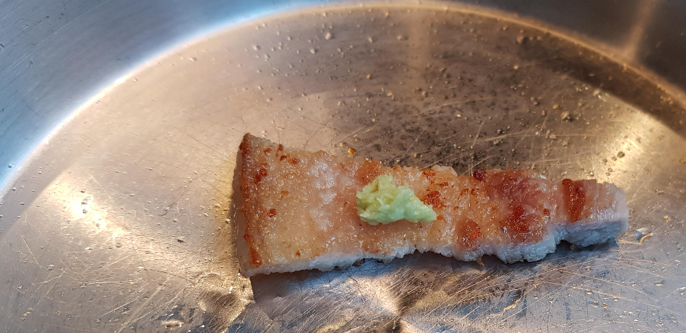 남돈 삼겹살 먹을 때 더 맛있게 먹는 꿀팁! 생고추냉이를 얹어 먹으면 느끼함은 싹 가시고 돼지고기의 고소함과 살짝 알싸한 맛의 궁합이 기가막힙니다. 와사비 좋아하시는 분들은 꼭 생와사비 요청해서 얹어서 드셔 보세요.