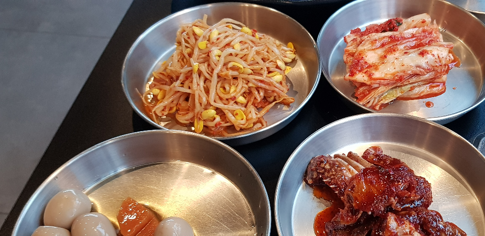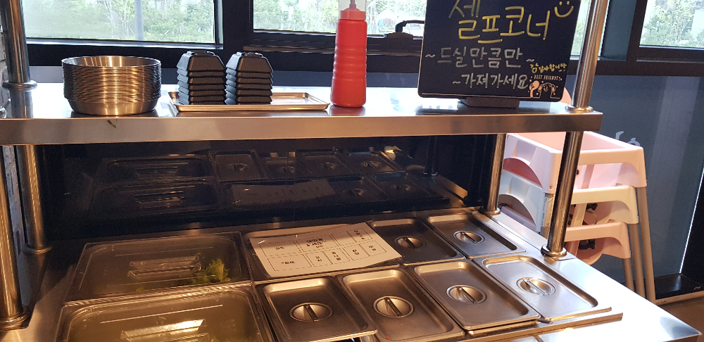매장 한쪽에 상추, 파채, 김치, 콩나물, 고추, 마늘, 쌈장 등 편하게 가져갈 수 있는 셀프코너도 준비되어 있어서 편합니다.