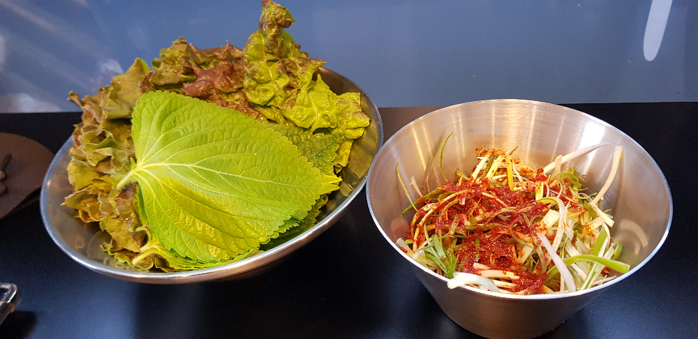 기본찬으로 상추, 깻잎, 파채 무침, 콩나물 무침, 김치, 메추리알 장조림, 양념게장 등이 나오고 때에 따라서 조금씩 변동은 있으니 참고해주세요.