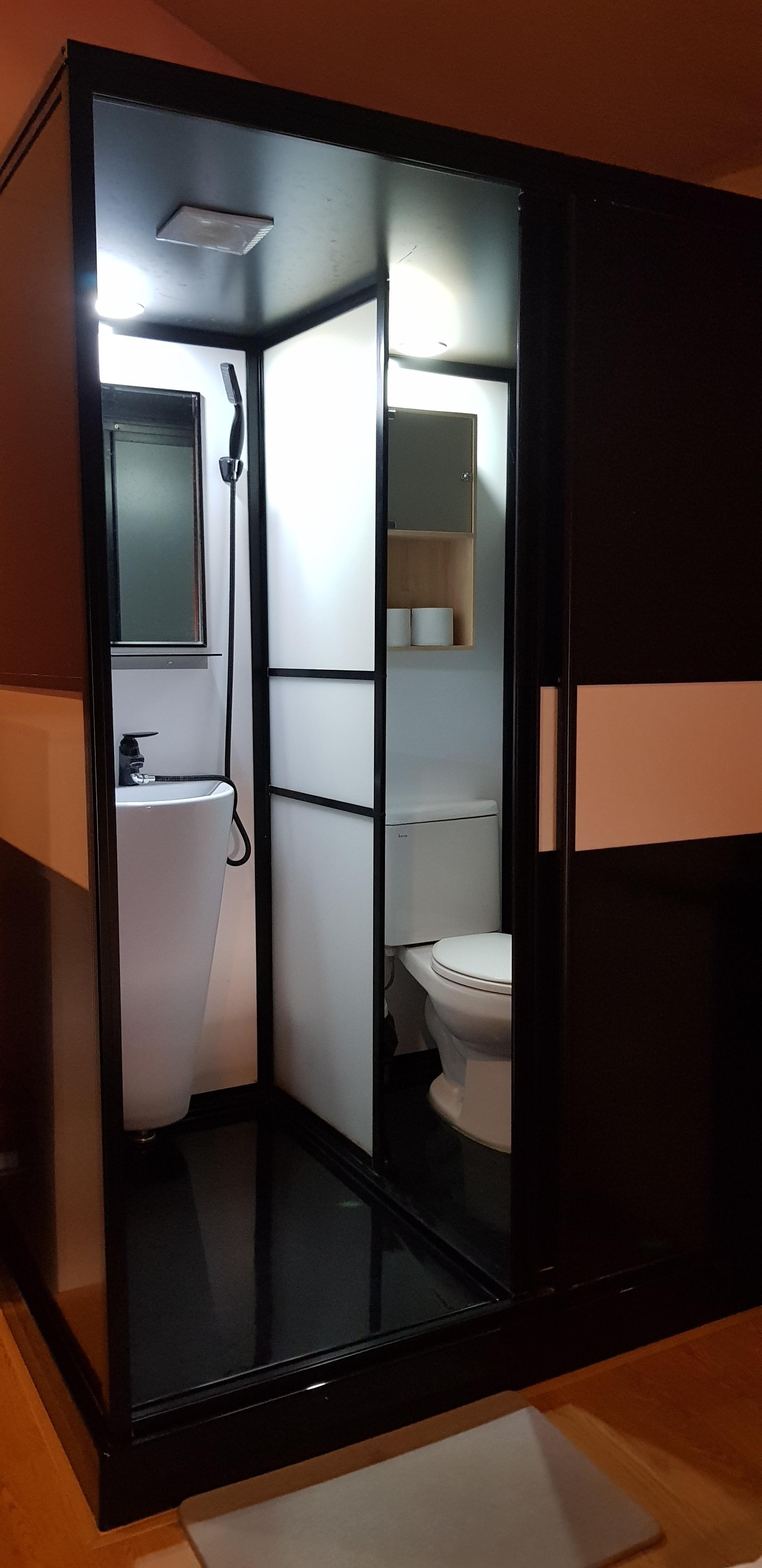 내부에 침대, 소파, TV, 냉온풍기 시설이 있고 사진으로 보던 것보다 넓게 느껴져서 이용할 때 답답함은 전혀 없었습니다. 청소와 환기를 잘해주셔서인지 쾌적했고 내부에 작지만 화장실과 샤워시설 공간도 있어 외부로 왔다 갔다 하지 않아서 좋았지만 샤워할 만큼의 넓은 공간은 아니었습니다.