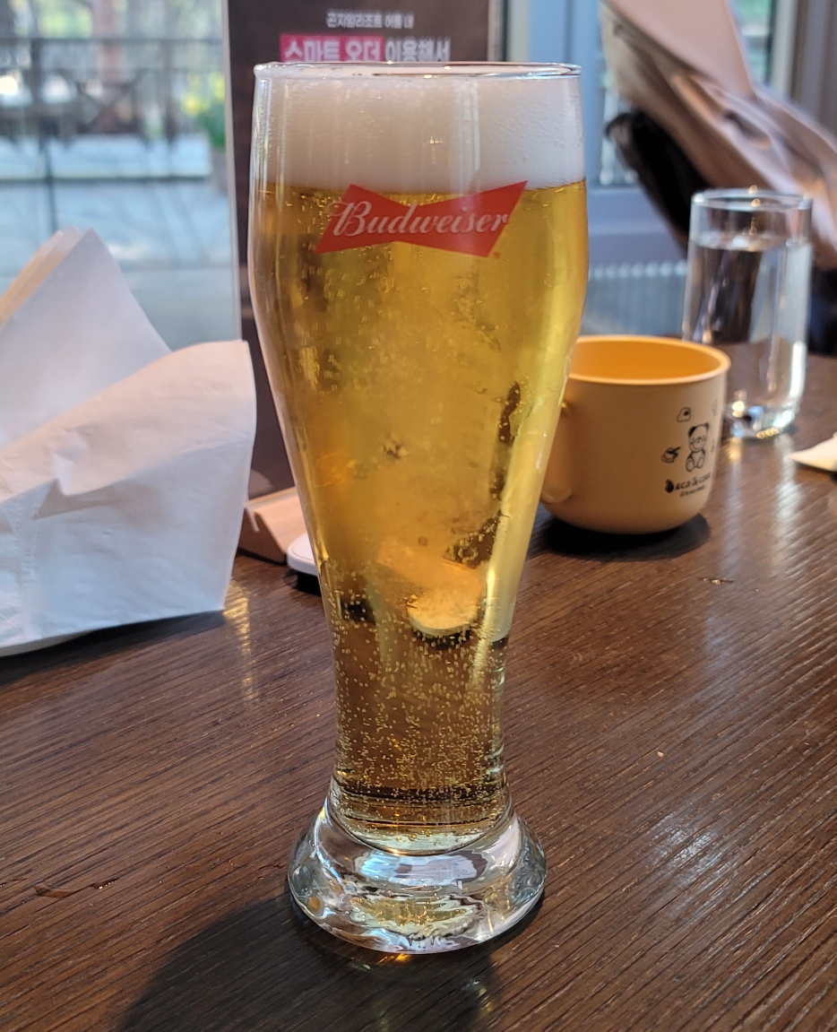 곤지암리조트를 방문하셨는데 맥주를 좋아하시면 무조건 미라시아로 달려가주세요! 방문해보니 맥주 무제한 메뉴가 있어서 마음속으로 소리지르면서 바로 맥주부터 주문해버렸습니다. 버드와이저, 스텔라 두 종류의 생맥주가 무제한이고 저는 버드와이저로 주문했는데 가격은 14,900원, 스텔라 생맥주가 17,900원이었던걸로 기억합니다만 다를 수 있습니다.