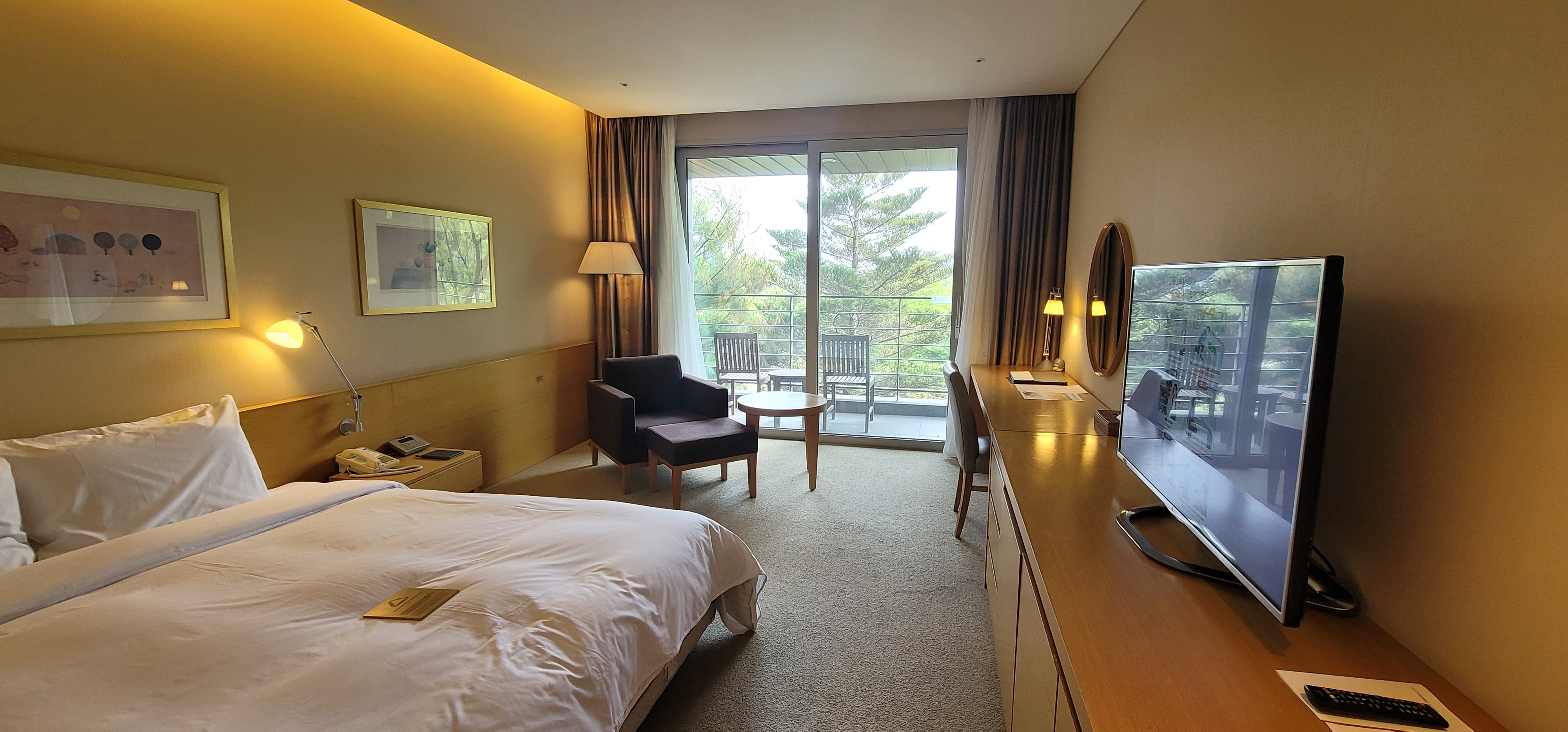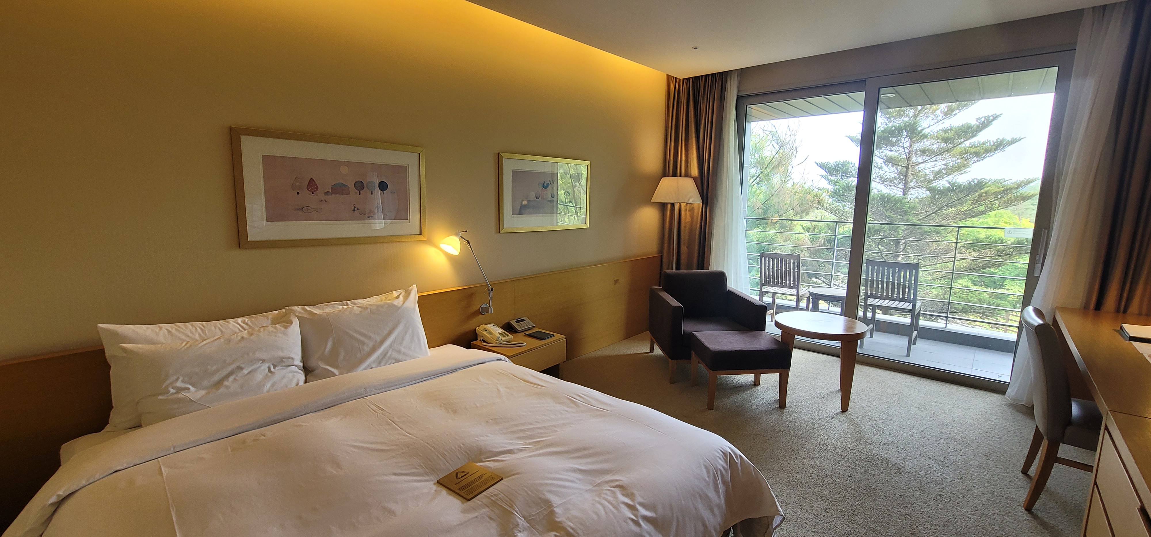 롤링힐스 호텔은 수페리어, 디럭스, 패밀리 트윈, 패밀리 트윈 프리미어, 스튜디오 스위트, 비즈니스 스위트 타입으로 구성되어 있고 제가 예약한 룸은 디럭스킹 객실입니다. 전망은 가든뷰와 시티뷰로 나눠져있어서 저는 가든뷰로 선택했는데 아쉽게도 커다란 나무에 가려져 뷰는 즐길 수 없어 아쉬웠습니다.