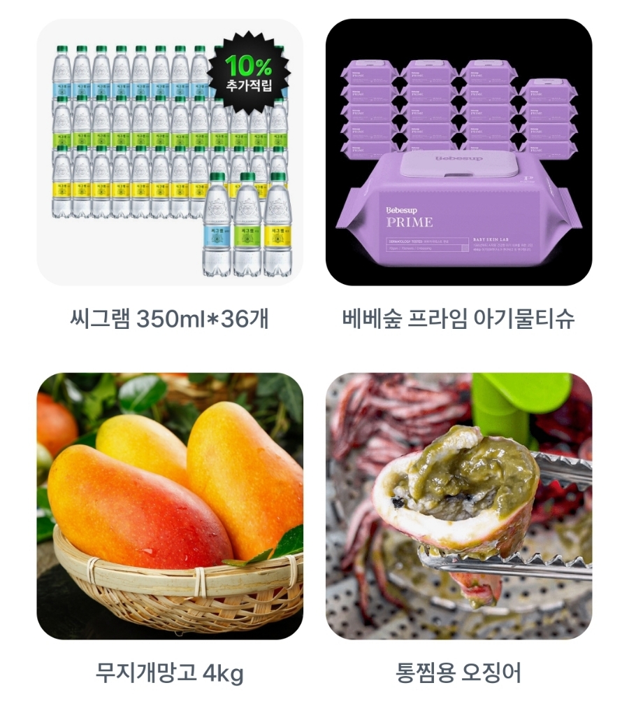 6월 16일 토스 두근두근 1등 찍기 오늘의 후보는 씨그램 350ml, 베베숲 프라임 아기물티슈, 무지개 망고 4kg, 통찜용 오징어, 남여공용 아쿠아 샌들, 핑크 다이아팩트 기획세트, 나로키즈 모음전, 모나리자 미용티슈, 땅콩버터 노슈거 2개, 동원 DHA 참치입니다.