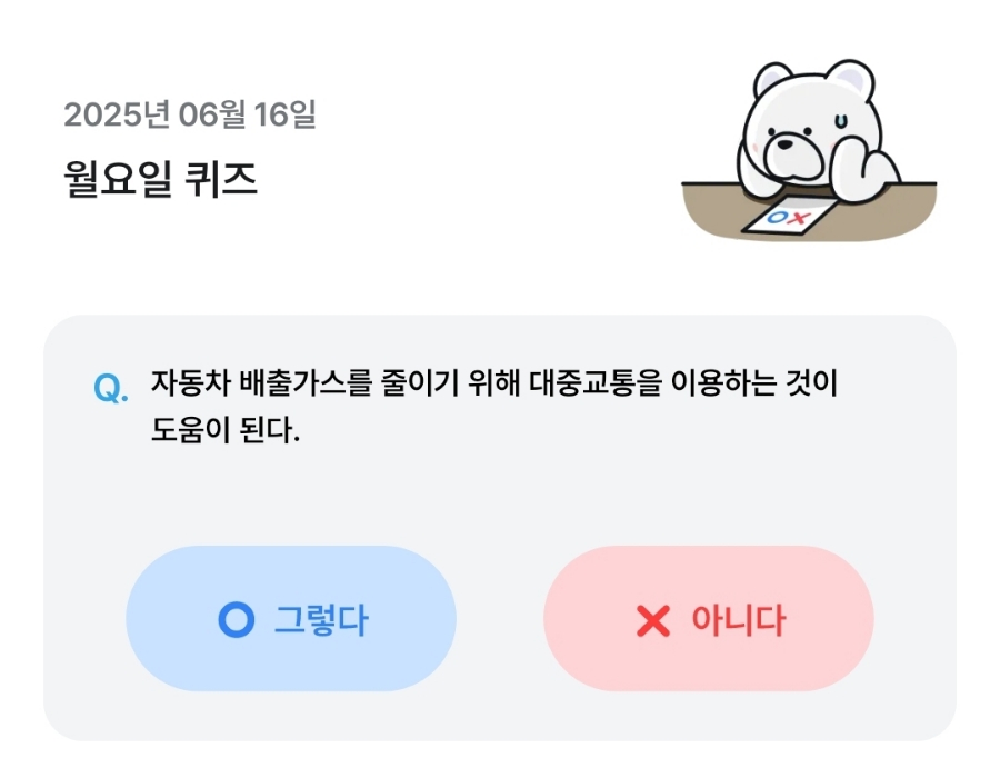 6월16일 기후행동퀴즈 정답, 기후행동퀴즈 정답은 O 그렇다 입니다!