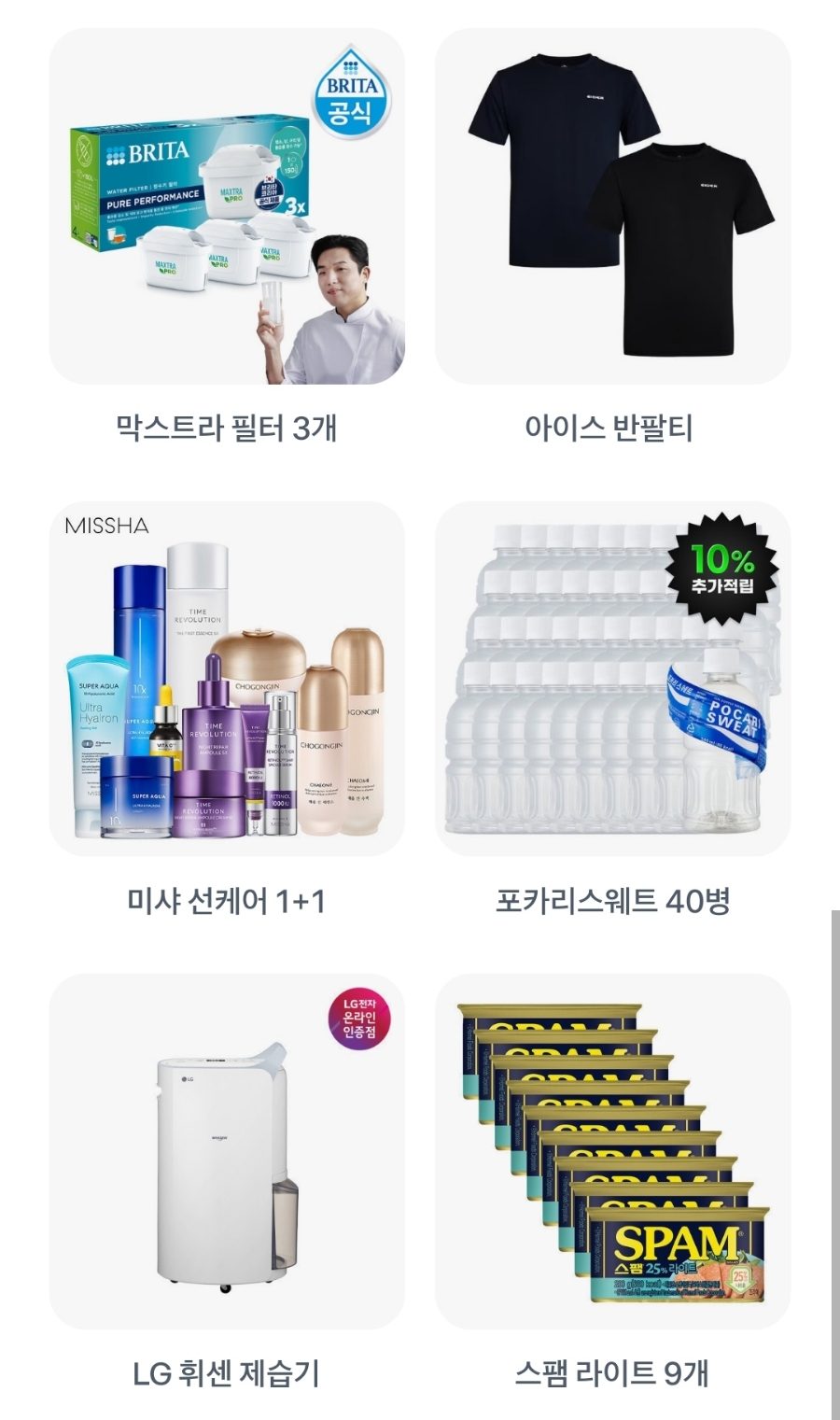 6월 27일 토스 두근두근 1등 찍기 오늘의 후보는 디스커버리 방수화, 스파클생수 100병, 다우니 향수세제, 타미진스 여름티, 막스트라 필터 3개 아이스 반팔티, 미샤 선케어 1+1, 포카리스웨트 40병, LG 휘센 제습기, 스팸 라이트 9개 입니다.