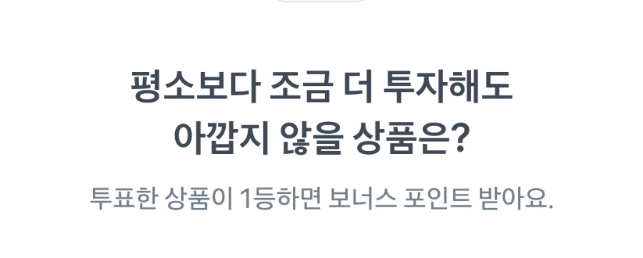 - 내가 투표한 상품이 1등이 된다면 더 많은 포인트를 얻을 수 있어요