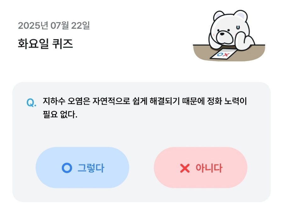 Q. 지하수 오염은 자연적으로 쉽게 해결되기 때문에 정화 노력이 필요 없다.