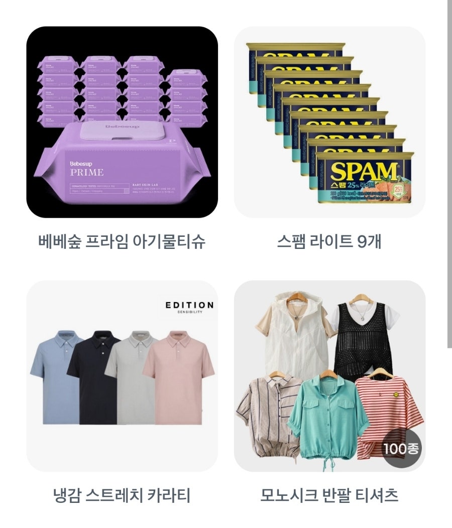 7월26일 토스 두근두근 1등 찍기 오늘의 후보는 베베숲 프라임 아기물티슈, 스팸 라이트 9개, 냉감 스트레치 카라티, 모노시크 반팔 티셔츠, 신비복숭아, 언더아머 여름기획전, 와이드버킷햇, 쿨 티셔츠 반바지, 펩시콜라라임, 데일리 마일드 선크림 입니다.
