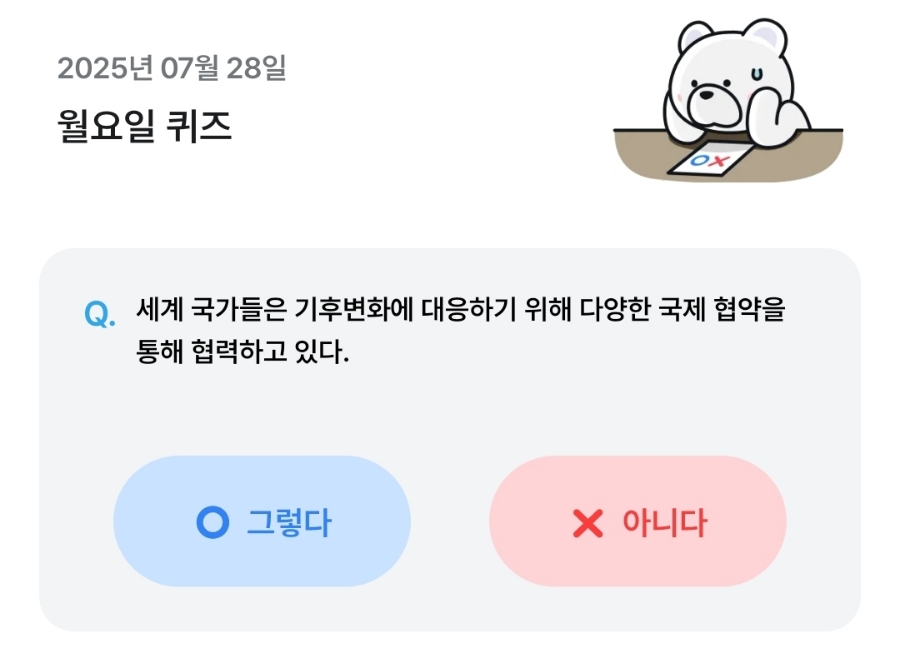 7월28일 기후행동퀴즈 정답, 기후동행퀴즈 정답은 O 그렇다 입니다!