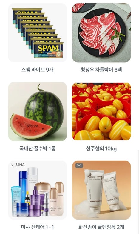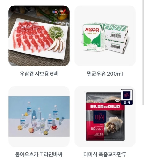 8월14일 토스 두근두근 1등 찍기 오늘의 후보는 우삼겹 샤브용 6팩, 멸균우유 200ml, 동아오츠카 T라인바싸, 더미식 육즙교자만두, 스팸라이트 9개, 청정우 차돌박이 6팩, 국내산 꿀수박 1통, 성주참외, 미샤 선케어 1+1, 화산송이 클렌징폼 2개 입니다.