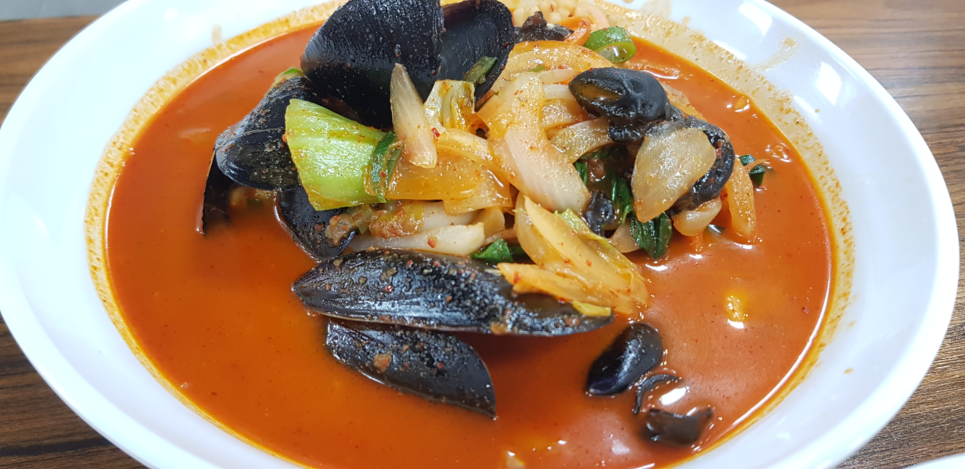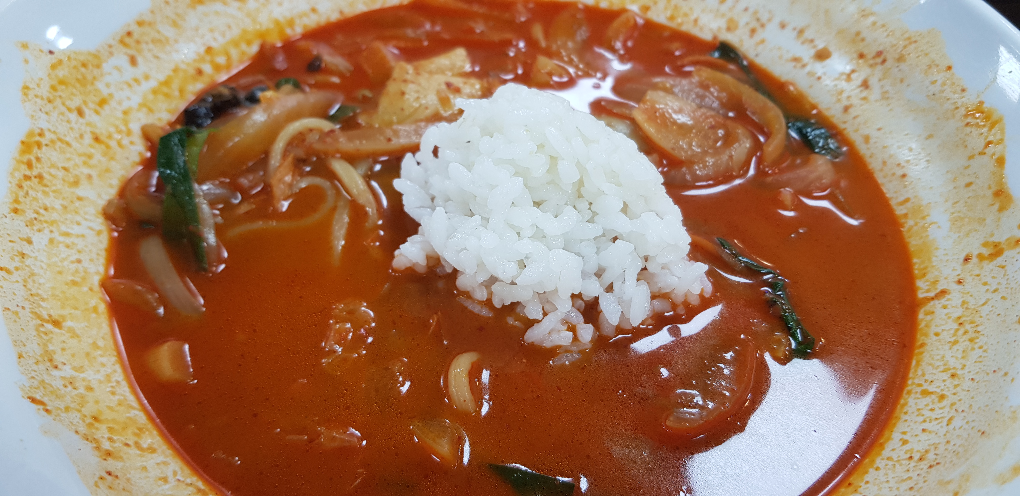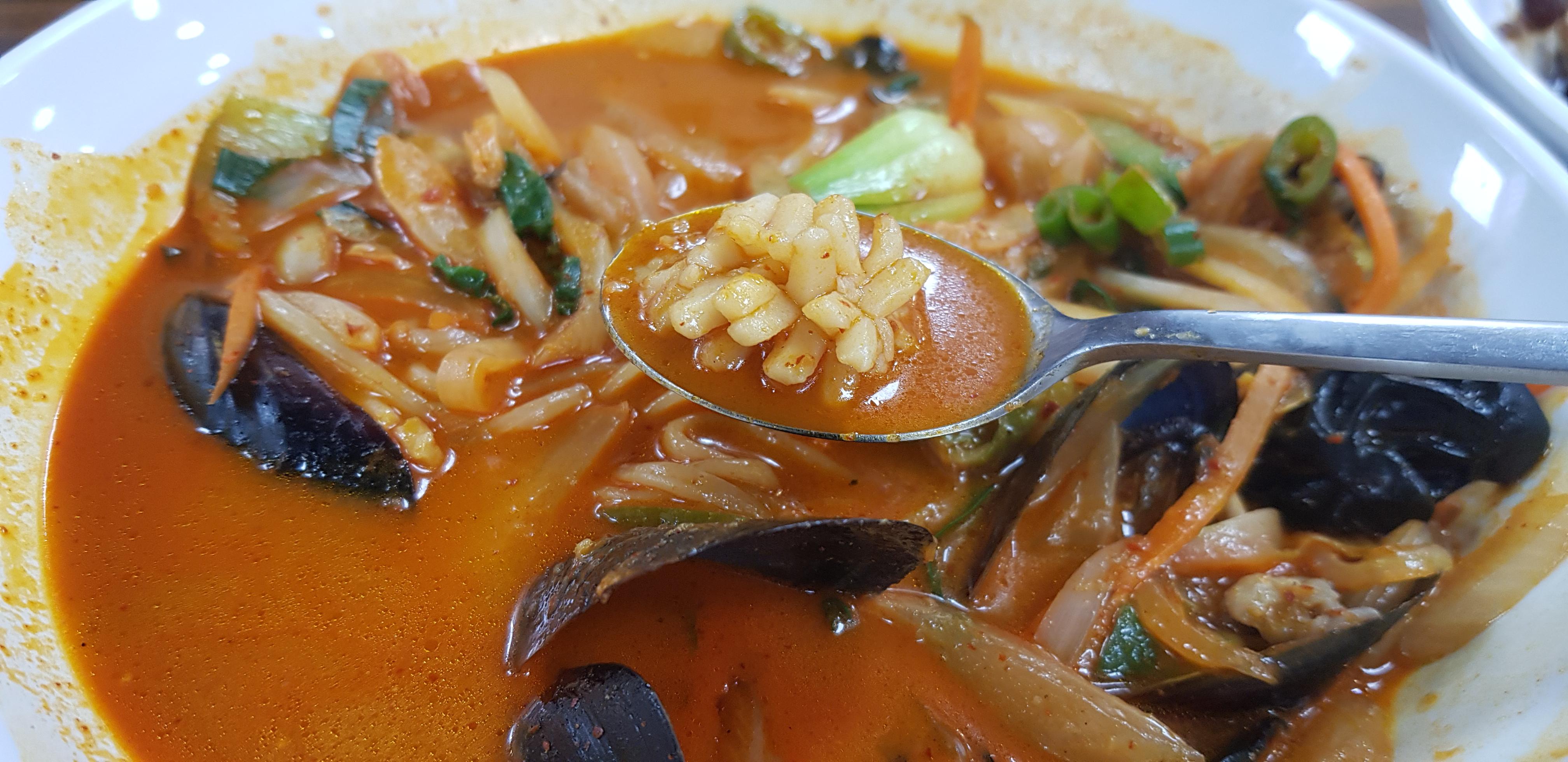 국물 색이 눈으로 보기에도 진해 보이는데 한 입 맛보니 살짝 매콤하면서 진한 맛이었습니다. 일반 짬뽕에서 나는 불맛보다는 육수가 깊고 풍미 있는 맛으로 이곳만의 특별한 맛이 느껴지는 맛입니다. 해물과 야채의 양도 푸짐하게 들어가서 더 다채로운 맛을 느낄 수 있었습니다.