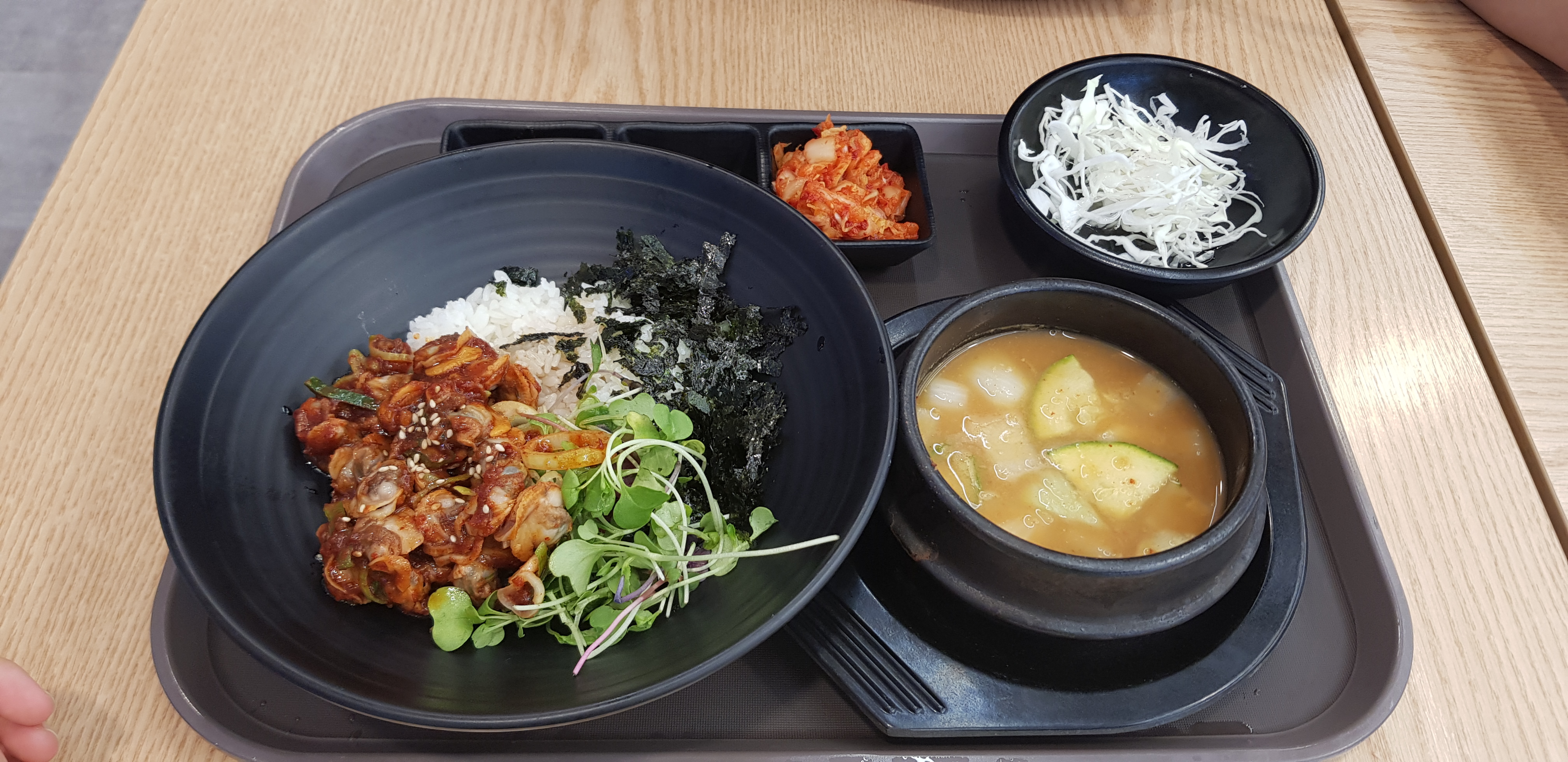 꼬막 덮밥 정식은 된장찌개가 함께 나오는데 꼬막 몇 알 들어있는건 아닐까 걱정했는데 생각보다 양이 넉넉했고 맛은 평범한편이었습니다.